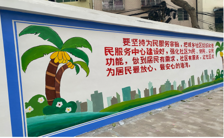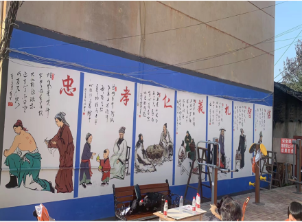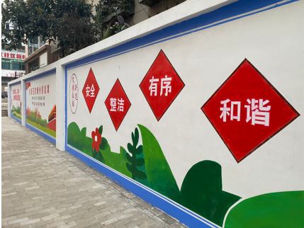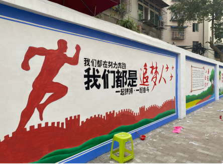 到达目的地,谢院长便带领队伍对现场进行测量和策划,谢桥化肥厂小区围绕着以忠、孝、仁、义、礼、智、信以及宣传文明行为为主题;铜江社区以社会主义核心价值观、创建美好家园,共建文明城市、我们都是追梦人为主题,设计独具风格的墙绘方案。队员们分工明确,协调配合;不惧寒冷,克服困难;在不影响学习的情况下利用周末时间进行志愿活动。经过八天的绘制,完成了一幅幅生动形象、传递文明建设的墙绘,为街道注入新活力,为建设文明社区贡献一份力量。