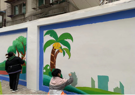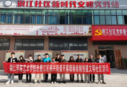 2021年11月14日,艺术学院19级美术系12名学生组成志愿队伍赴铜仁市碧江区铜兴街道开展绘制墙画,开展文明社区建设志愿活动,此次活动由艺术学院副院长谢云中带队。