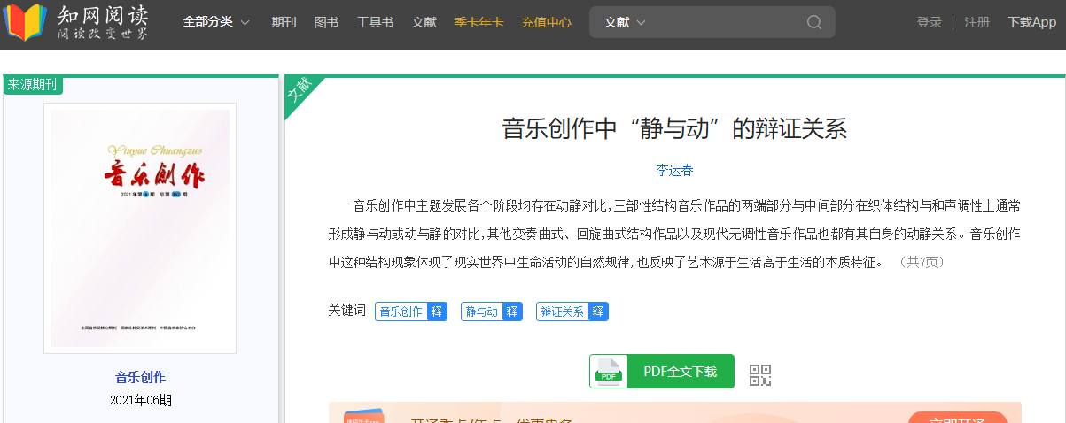 近日,艺术学院李运春博士的最新研究成果《音乐创作中“静与动”的辨证关系》在音乐学科权威期刊、全国中文核心期刊《音乐创作》2021年第6期上发表。