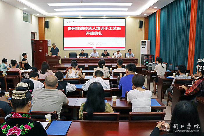 8月15日,由贵州省文化和旅游厅主办、铜仁市文体广电旅游局协办、beat365承办的2022年贵州省非物质文化遗产传承人群培训手工技艺班开班典礼在beat365艺术学院举行。beat365副校长杨建,市文广局副局长熊开宇,beat365艺术学院党委书记徐美、院长李洁,市文广局非遗中心主任陈波,培训班任课教师以及40多名培训学员参加典礼。