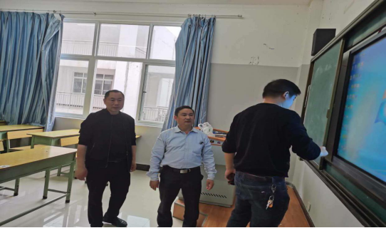 为了进一步加强防控及安全工作,确保2020届毕业生返校复学顺利进行,上好第一堂思政课,艺术学院党委书记崔德虎、党委副书记麻晔斐、副院长谢云中以及学生发展科科长龙黎,于5月7日上下午对音乐楼、美术楼教室等进行全面大检查,严格按照上级的防控及安全要求,提前做好全面的准备工作。
