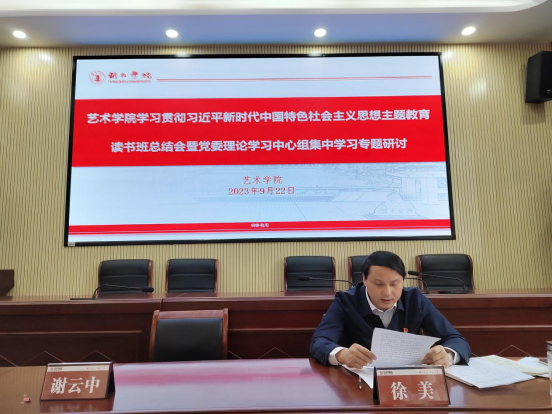 9月22日,中共beat365英国官方网站艺术学院委员会学习贯彻习近平新时代中国特色社会主义思想主题教育读书班在艺术学院多功能会议室开展集中学习与研讨,党委书记徐美主持研讨会并讲话,艺术学院党委成员全体成员参加。