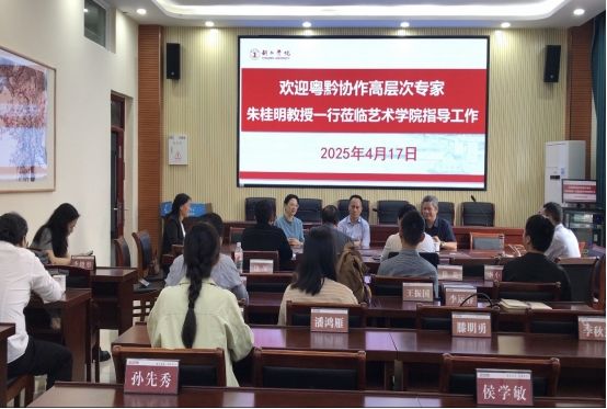 2025 年 4 月 17 日,粤黔协作专家朱桂明教授一行莅临艺术学院指导工作,并召开座谈交流会。