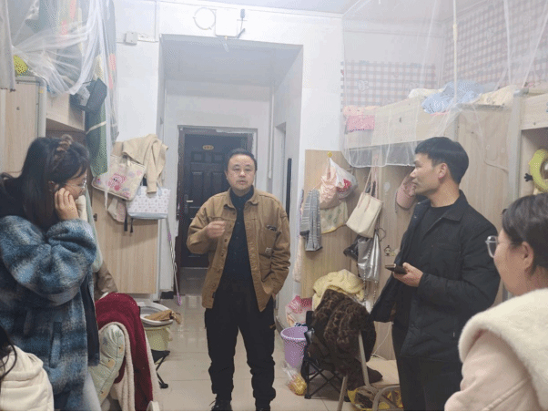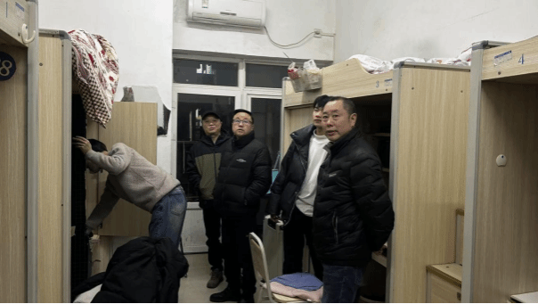 在学生寝室,院领导一行实地了解寝室的居住环境、供暖条件及安全设施配备情况,与同学们面对面亲切交流,详细询问大家的学习进度、生活状况和过冬物资准备情况。并叮嘱学生,冬季是安全事故高发期,同学们要时刻牢记寝室用电、用火安全,做好防寒保暖措施,同时合理规划学业,积极参与学科竞赛与专业实践,在实践中锤炼专业本领。