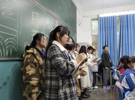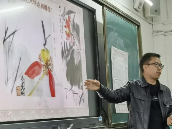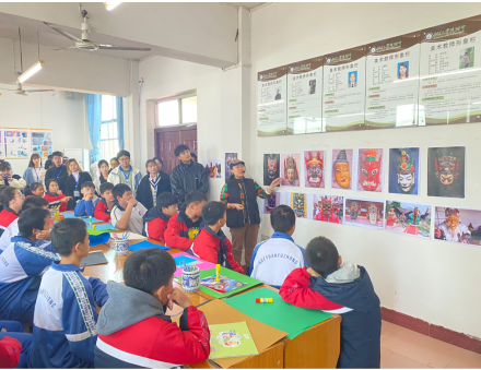 面对校园里书声琅琅、秩序井然,学生都非常兴奋。在见习中,对真正的初中美术课堂什么样子?学生喜欢什么样的美术课?老师怎么上好美术课?等,学生们都有了深刻的体会和了解。如:在课堂交流中,杨正海老师给学生讲了自己的教学经历,他中恳地告诉同学们:“做美术教师,要全面发展,对美术学所开设的课程都要有所掌握,因为初中美术涉及中国画、油画、版画、设计等内容。”田吉芝老师为了让同学们体验实践课,请大家帮忙制作了傩面具拼贴画,上了一堂别开生面的傩面具手工课。