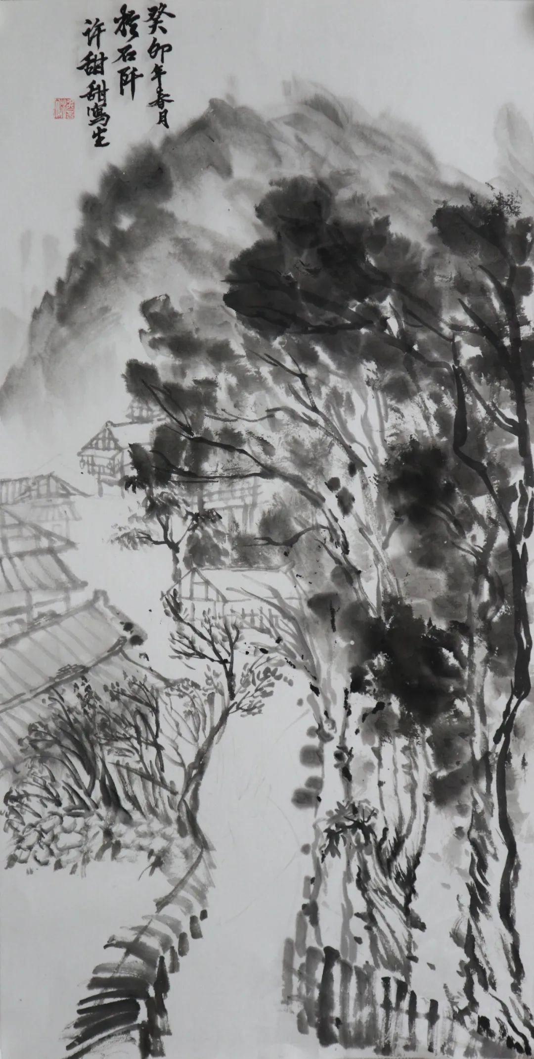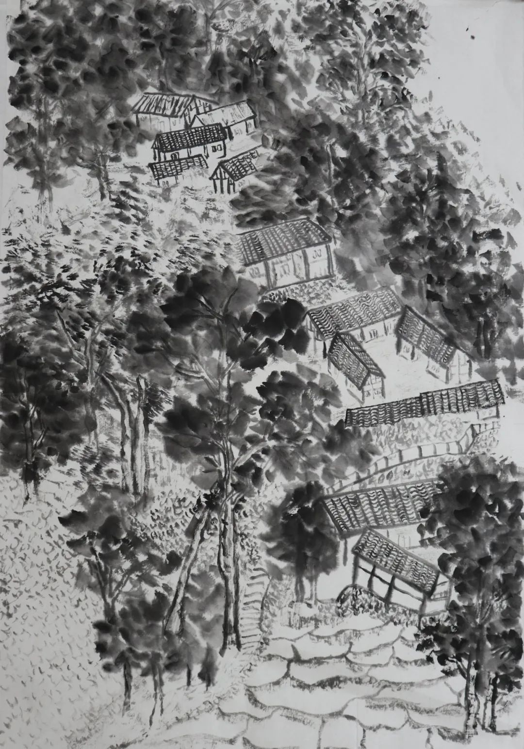 除了以上的问题,其实我学到的更多,如山体、树木、房屋、梯田在山水画中的表现。出去自己画和在别人的画前临摹很不同,可以更轻松,更能表达自己的情感、技法、风格。实践往往会给我们带来很多经验,这次写生分析了大自然的山川规律,站在客观事物面前用笔墨表现出来,也给我带来了更多直观的感受,但要解决的问题还有很多,需要请老师帮助和自己再学习去丰富、深入画面。