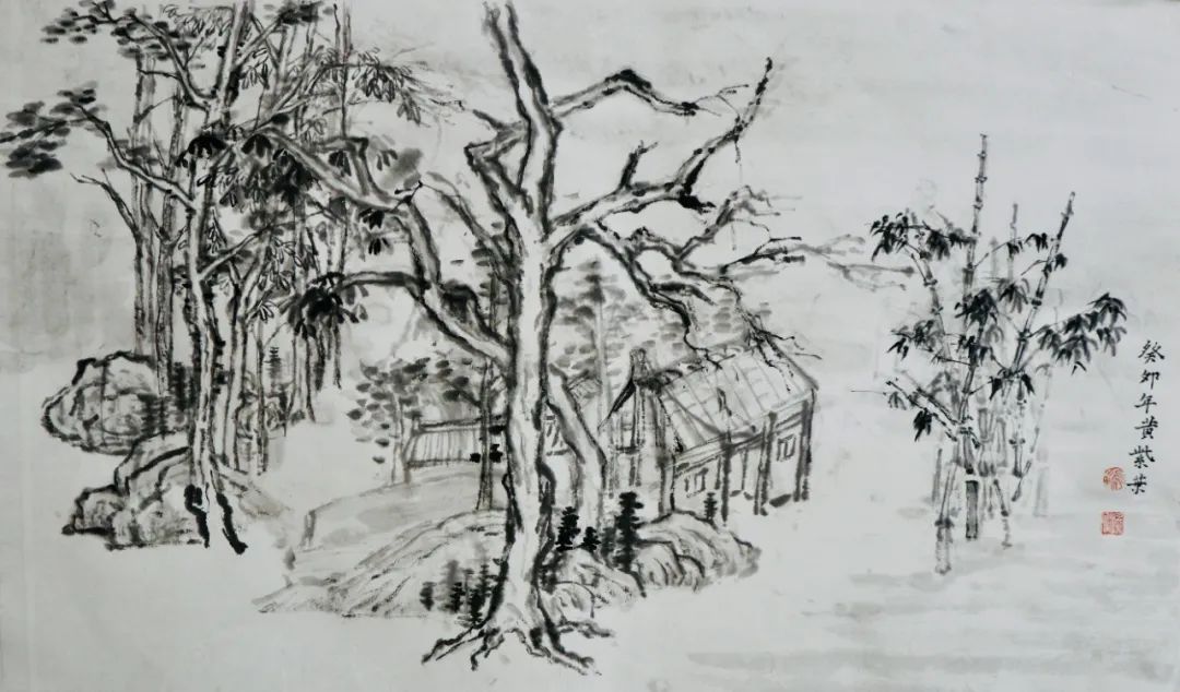 何为山水写生?在这次楼上之行前,我一直认为它与以往的绘画写生并无不同,只是把工具换成了毛笔。直到老师指出,“不要把山水画写成风景画,它不同于西画的透视观看方式”。我才开始渐渐明白原来山水画不是普通的删减后留出大片空白,也不是看见什么就画什么。这种删减也是根据画面需求而来的,适当的留白一方面是为了让画面不被堵死,尤其是画面的边边角角;再者是让画有更多迁想的空间。