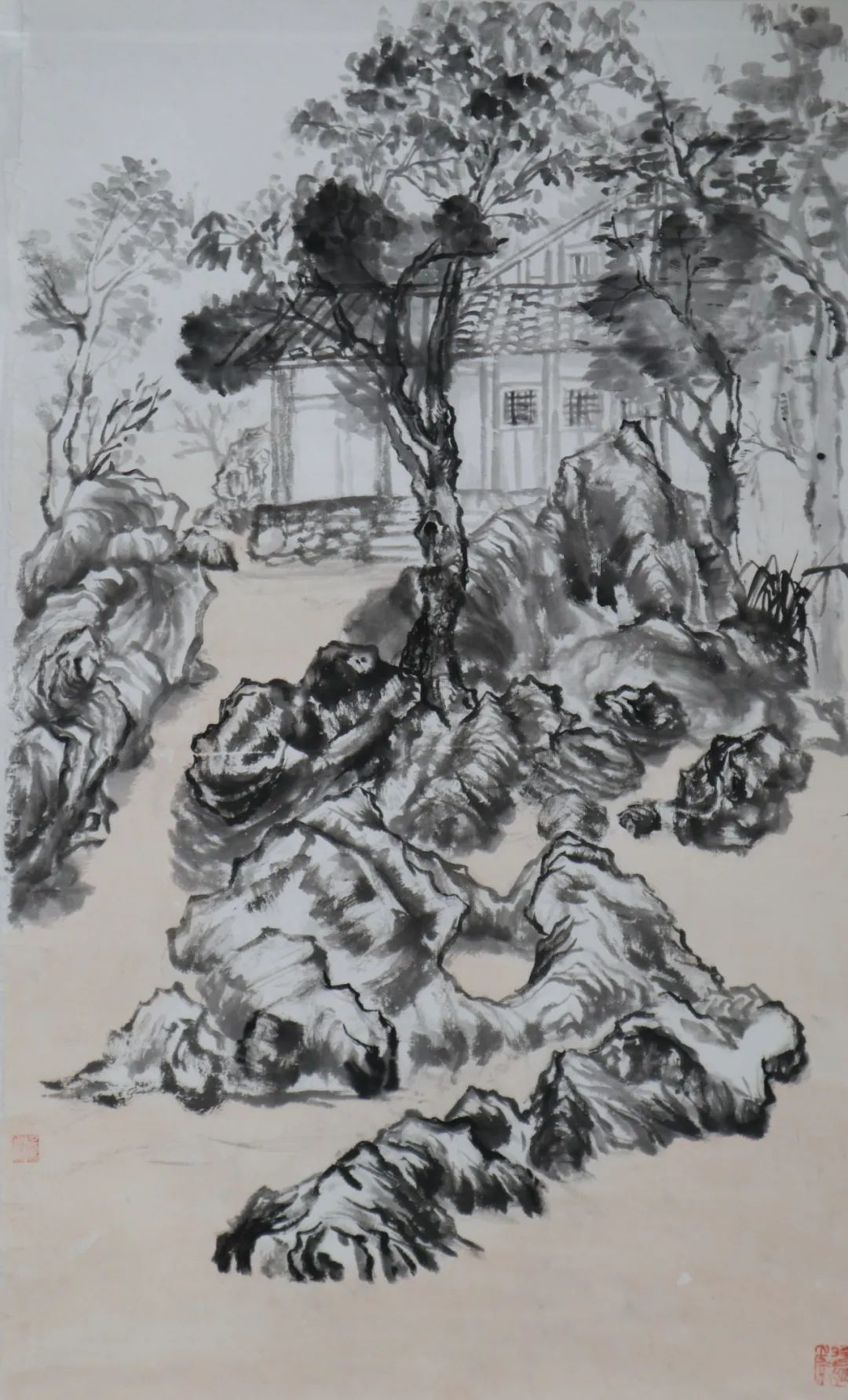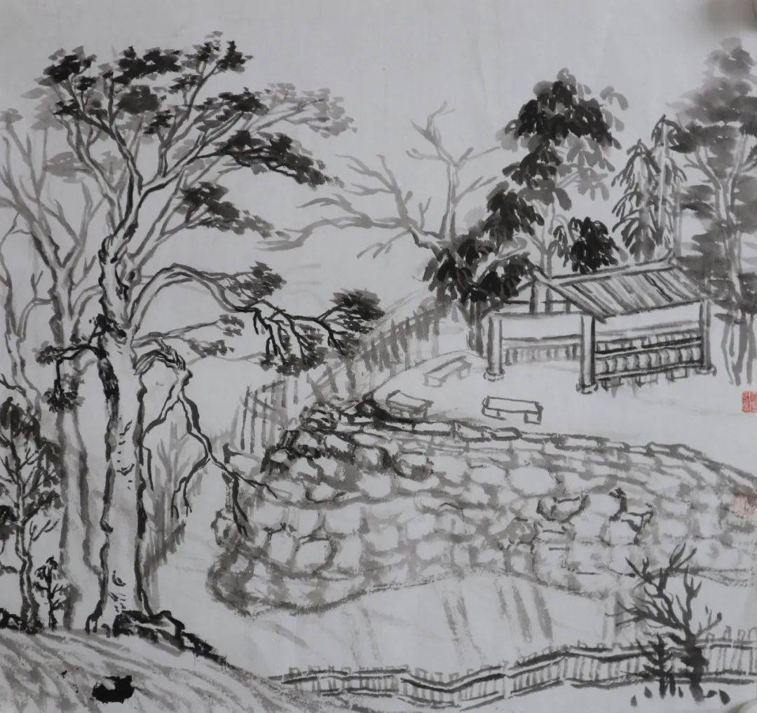 可能是因为自己本身在学校临摹的时候就时常拘谨而导致在写生的过程中有些放不开,在景物的取舍上不知道如何提炼概括;在笔墨上也不太敢用重墨,因此画面总是有些平,虚实处理不当;或在造型上还有些生硬不自然。其他的问题,就是在一些树木,山石的勾勒和皴擦上,应该再去多练习、多观察、多感受。