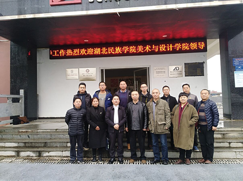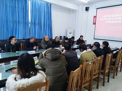 2018年11月15日,湖北民族学院美术与设计学院一行7人,在美术与设计学院院长金晖院长的带领下,来beat365美术与设计学院进行学术交流。beat365英国官方网站艺术学院崔德虎书记、李洁院长、民族学学科带头人梁正海教授、学术带头人龙开义教授、戴腾教授、美术与设计系、音乐与表演系、艺术学院实训中心等相关教师参加了学术交流活动。
