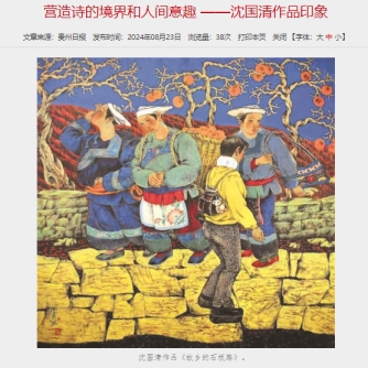 2023年8月23日的《贵州日报》刊载了中国作协会员、贵州省著名作家完班代摆(龙志敏)的艺术评论文章《营造诗的境界和人间意趣 ——沈国清作品印象》。