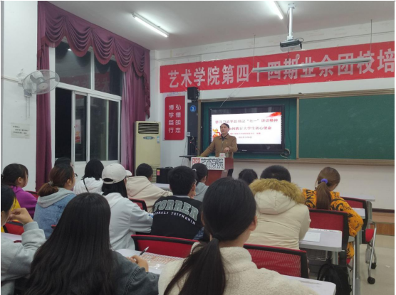 为使我院团员能明白如何做一名优秀的共青团员和如何践行大学生的初心使命,11月4日艺术学院于美术楼201教室开展业余团校第四十四期培训活动。本日培训由艺术学院党委书记徐美、党委副书记麻晔斐进行专题讲座,70名学员参加培训。