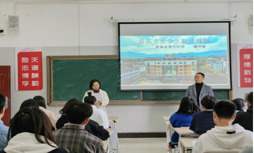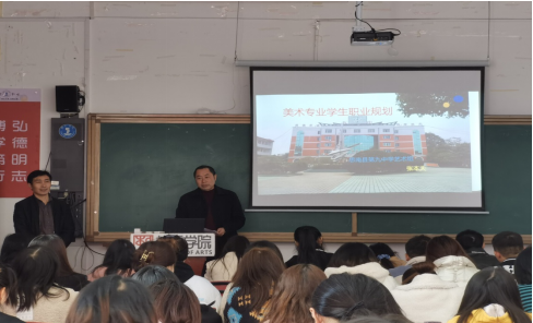 艺术学院于2021年11月22日下午13:00在201、203教室,分别召开美术学、音乐学专业“职业规划”专题讲座,讲座由思南县第九中学蒲开勇老师、张本天老师为这次讲座主讲人,美术学由艺术学院副院长谢云中主持,音乐学由艺术学院学生发展科科长龙黎主持,此讲座131名学生倾听了这次讲座,蒲开勇、张本天两位教师精彩的讲解,现场师生互动环节非常精彩。