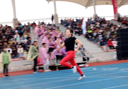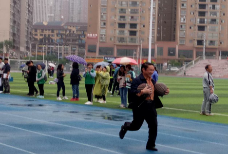 龙黎老师参加100米竞赛