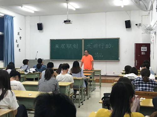6月4日,艺术学院在美术楼及音乐楼开展“五层联创,文明行动”的主题班会。艺术学院全体师生以班级为单位在203、204、205等教室召开活动。