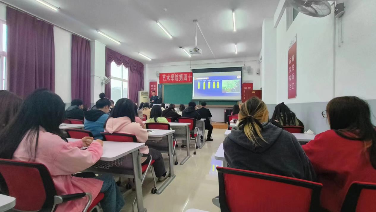 4月23日下午,市公安局反诈中心吴枝科警官在美术楼201教室为我院学生开展防范电信网络诈骗知识讲座,全院班干部到场聆听。
