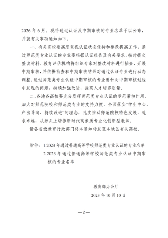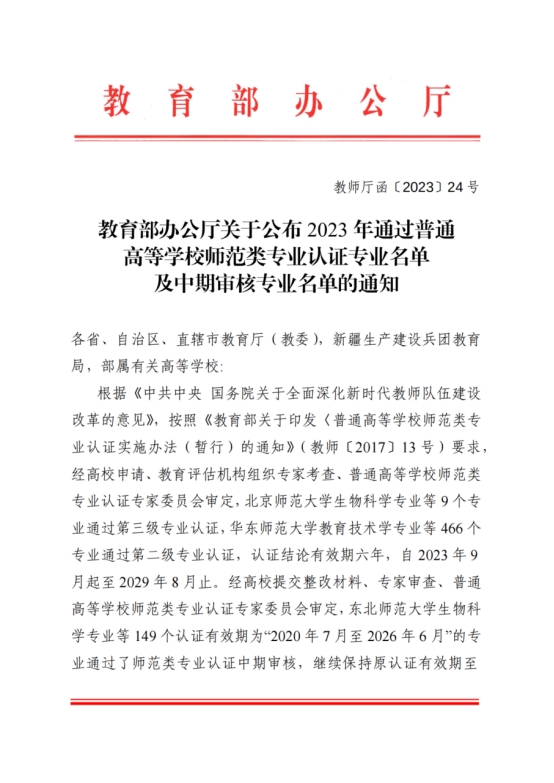 据悉,根据教育部相关文件规定,凡通过师范类二级认证的专业,在认证有效期内入学的师范生,仅需通过教育部教师资格证笔试成绩后,参加校内自行组织的中小学教师资格面试合格后,即可取得相应教师资格。