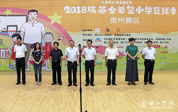 On the morning of July 9, the opening ceremony of "2018 Yao Foundation Hope Primary School Basketball season" in Guizhou District (Tongren) was held in our gymnasium. Tang Shengjian, deputy inspector of the Communist Party Committee of the League, Xia Hong, The member of standing Committee of the CPC Municipal Committee and the head of the propaganda Department, Rao Xiaohua, deputy secretary of the CPC Committee of our school, Yang Kun, director of the Beijing Yao Fund Public Welfare Fund Cooperation Department, and Luo Chaoheng, deputy secretary-general of the Provincial Youth Development Fund. Wang Huiying, deputy director of the propaganda department of the municipal party committee, pu Zhang, secretary of the Communist party committee, Huang Guogang, deputy director of the municipal education bureau, and du Dayu, deputy director of the municipal sports bureau, attended the opening ceremony. Thirty teams, referees and volunteers from all provinces and cities participated in the opening ceremony. The opening ceremony was held by Pu Zhangn.