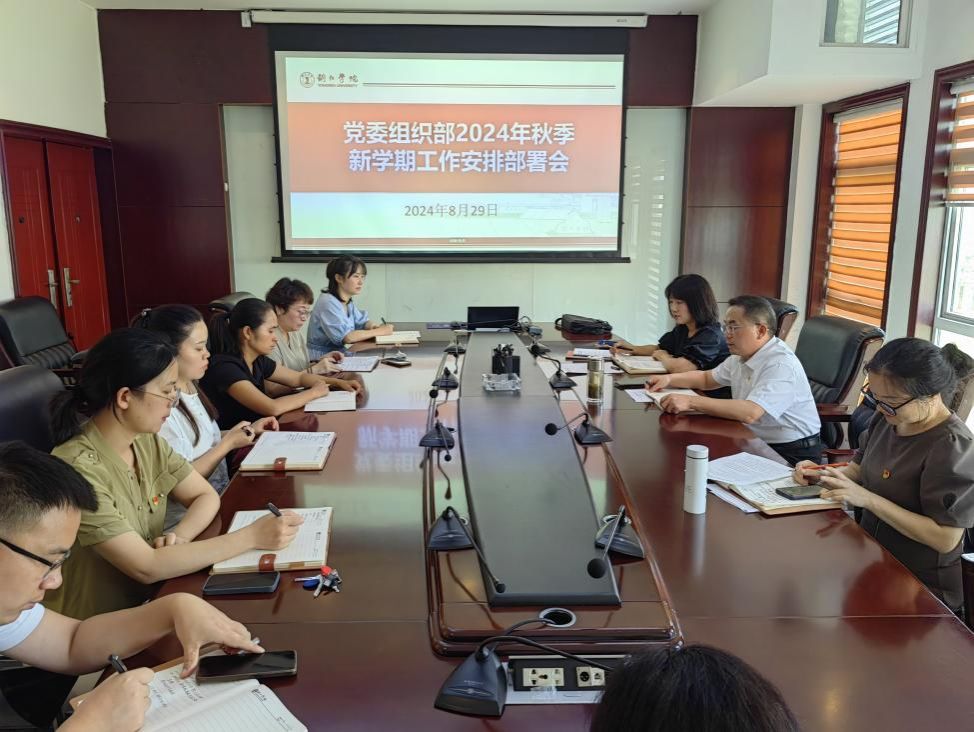 8月29日下午,党委组织部在行政楼8326会议室召开2024年秋季学期工作会议,安排部署新学期工作。党委副书记、组织部部长梁正海主持会议;党委副部长周慧娟、徐秋云及党委组织部全体干部参加会议。